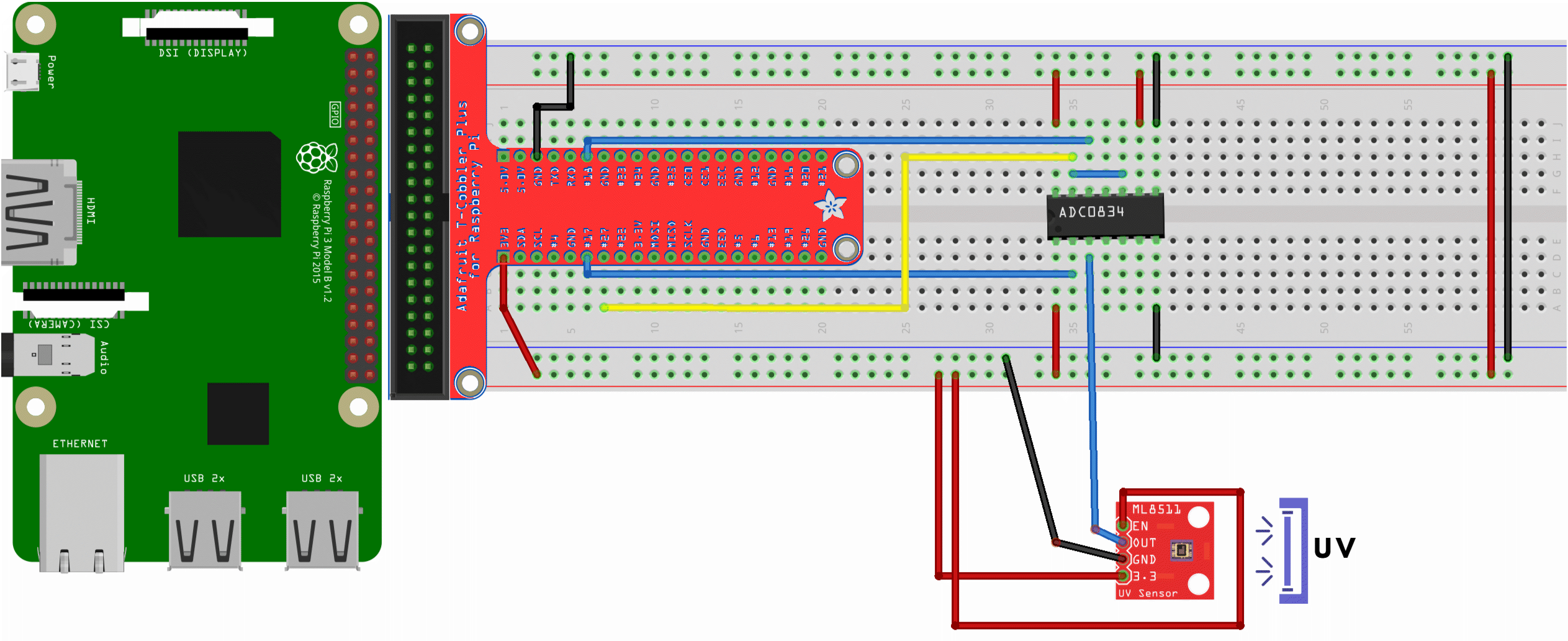 Measuring UV Light with the ML8511 UV Sensor, ADC0834, and a Raspberry Pi
